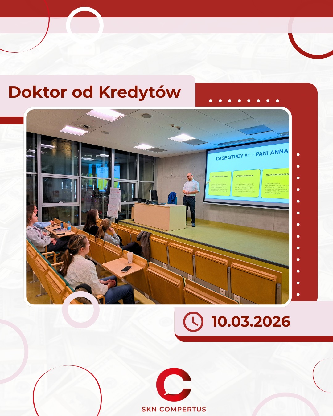 10 marca w Studenckim Kole Naukowym Compertus działającym przy Uniwersytecie Ekonomicznym w Poznaniu odbyło się spotkanie z Kamilem Dyrtkowskim – przedsiębiorcą, pośrednikiem finansowym oraz wykładowcą akademickim. Wydarzenie zostało zorganizowane z myślą o studentach zainteresowanych rynkiem finansowym, konsultingiem oraz ścieżkami kariery w sektorze usług finansowych.